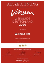 Empfohlen im Vinum - Weinguide Deutschland 2018, 2019, 2020, 2021, 2022, 2023, 2024 und 2025!