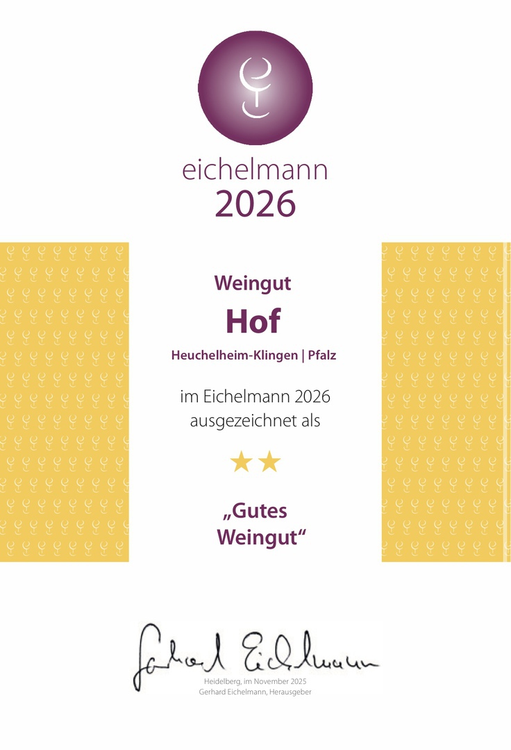 Empfohlen im Eichelmann Weinführer 2019, 2020, 2021, 2022, 2023, 2024, 2025 und 2026!