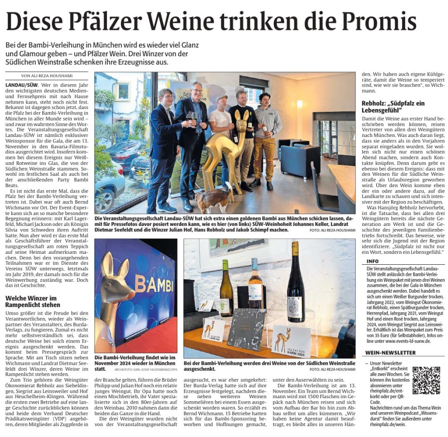 Vom Burda-Verlag ausgewählt, wird unser „2021er Spätburgunder Herrenpfad • trocken“ am 13. November auf der Bambiverleihung ausgeschenkt. Die Prominenz darf sich also nicht nur auf einen